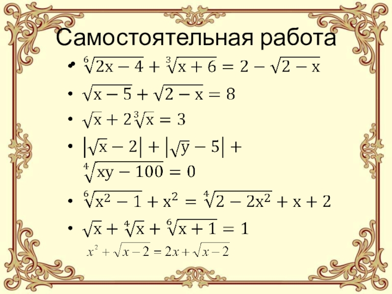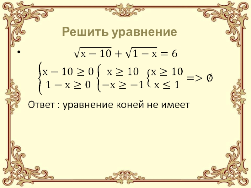 Слайд 1Решение иррациональных уравнений с использованием свойств входящих в них функций