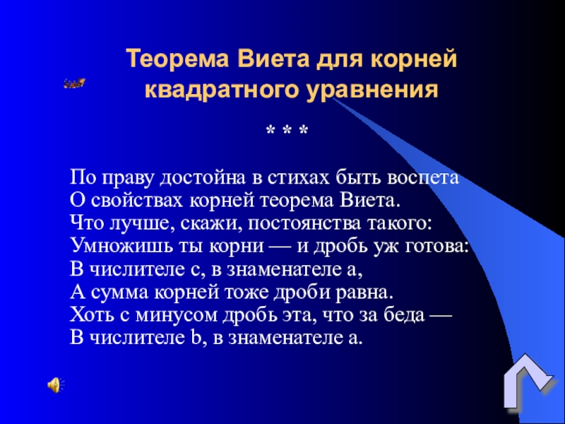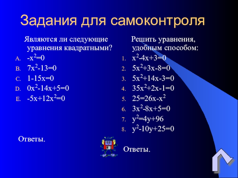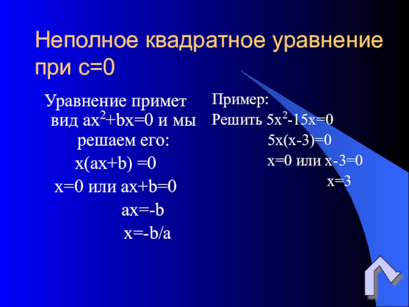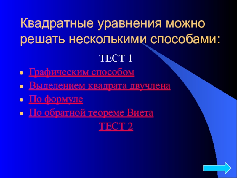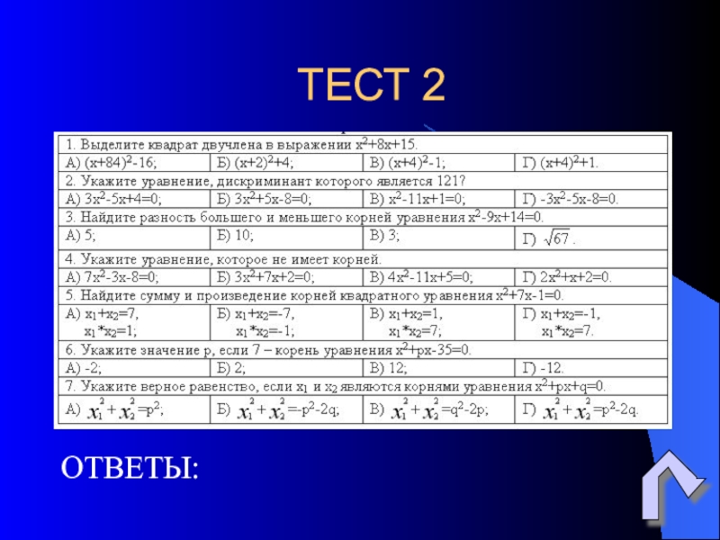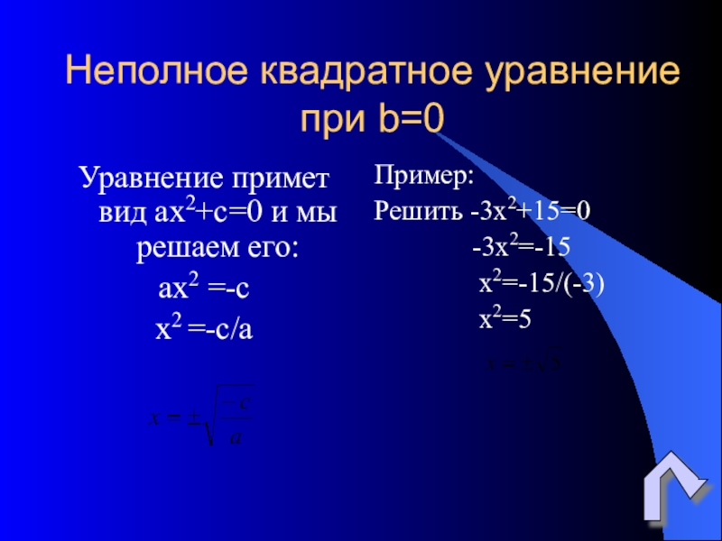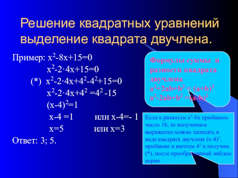 Если к разности х2-8х прибавить число 16, то полученное выражение можно записать в виде квадрата двучлена (х-4)2, прибавим и вычтем 42 и получим (*), после преобразований найдем корни