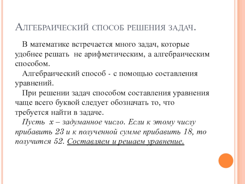 Алгебраический способ решения задач.