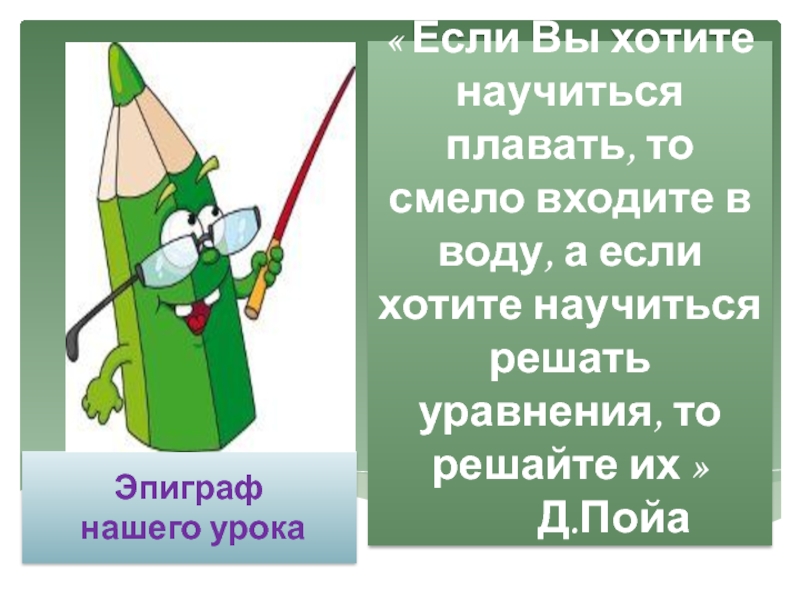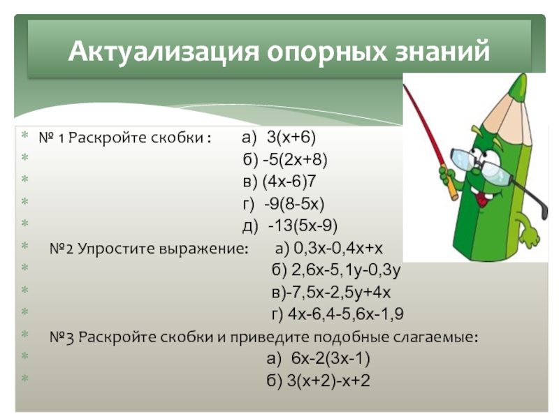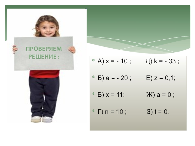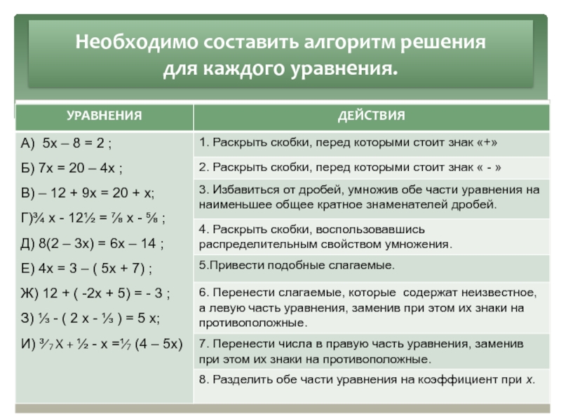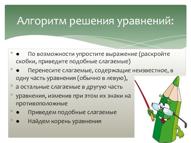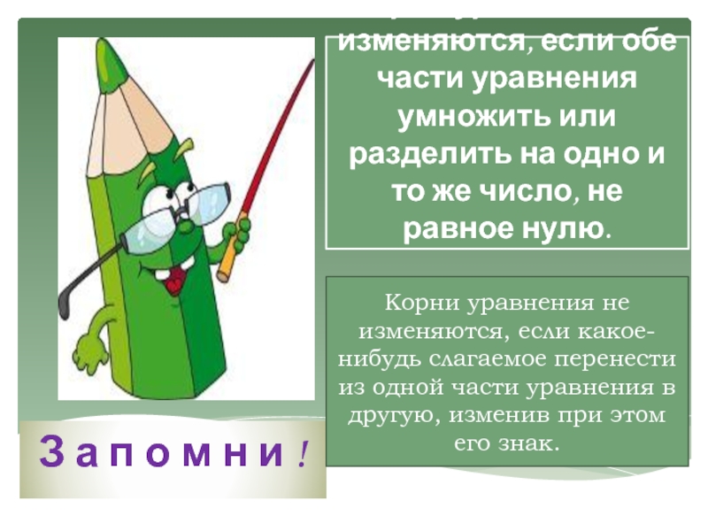 Корни уравнения не изменяются, если какое-нибудь слагаемое перенести из одной части уравнения в другую, изменив при этом его знак.