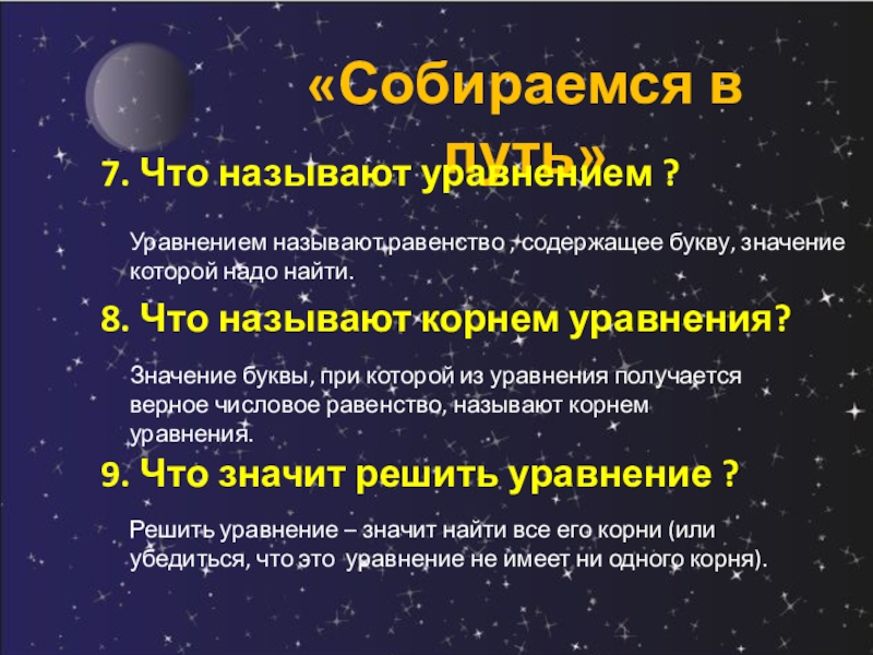 Значение буквы, при которой из уравнения получается верное числовое равенство, называют корнем уравнения.