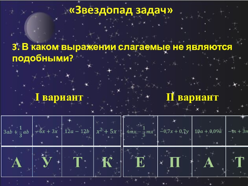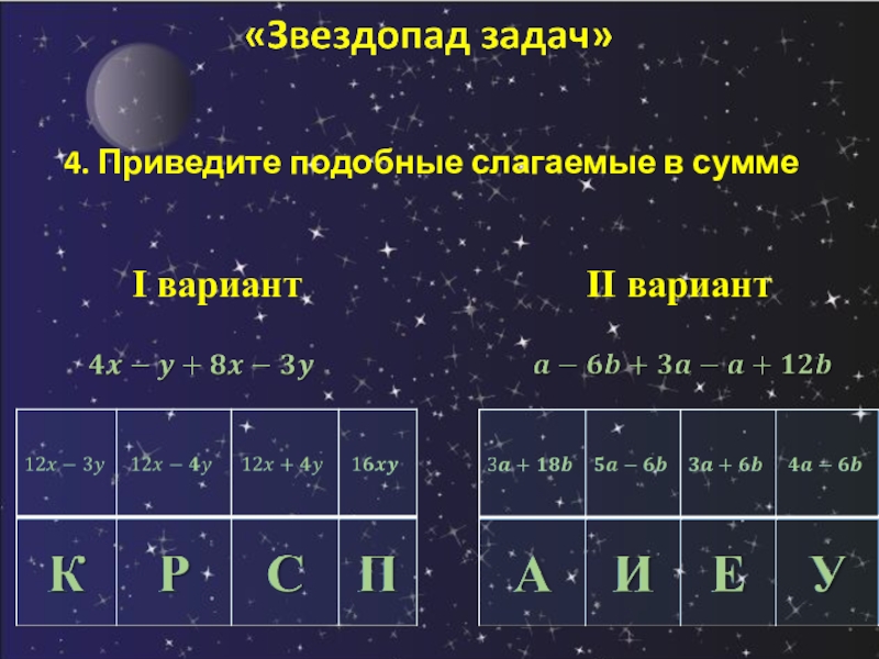 Слагаемые, имеющие одинаковую буквенную часть, называют подобными слагаемыми.