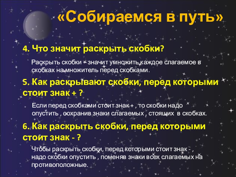 6. Как раскрыть скобки, перед которыми стоит знак - ?