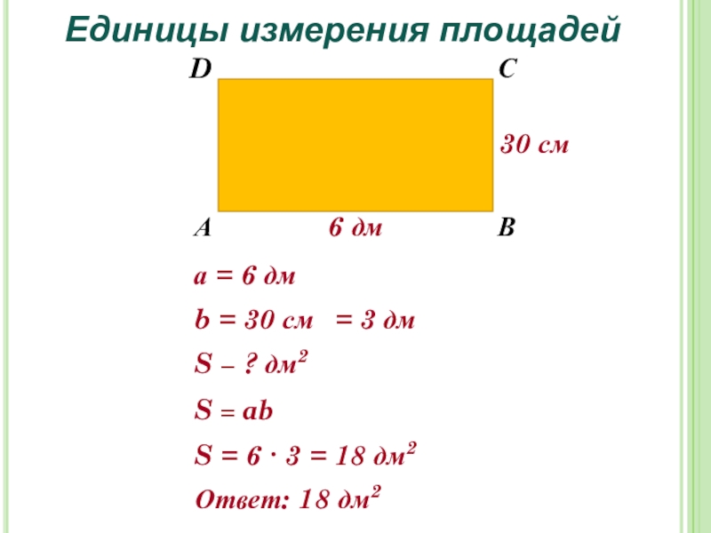 S = 6 ∙ 3 = 18 дм2