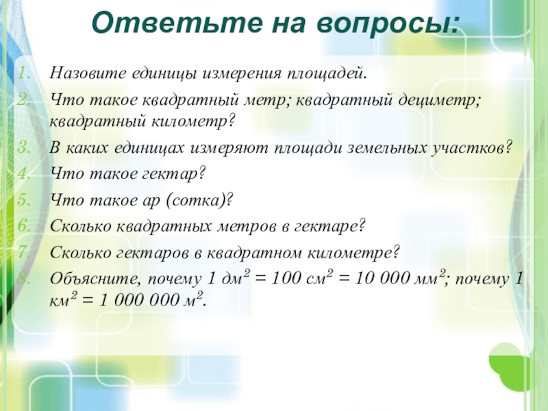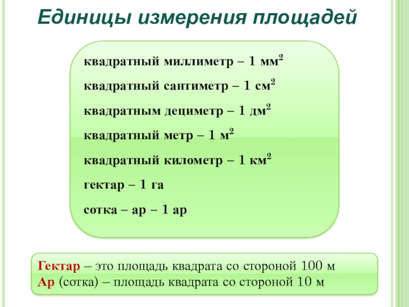 Ар (сотка) – площадь квадрата со стороной 10 м