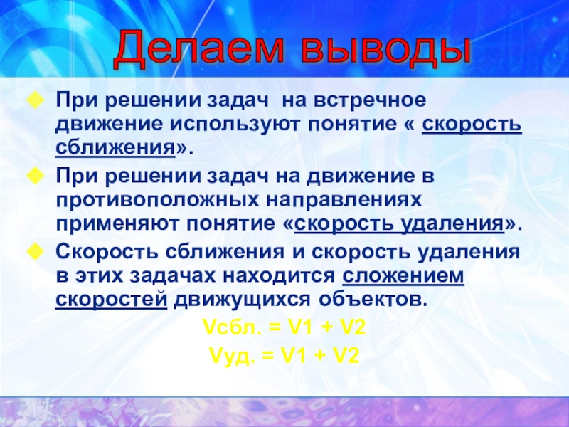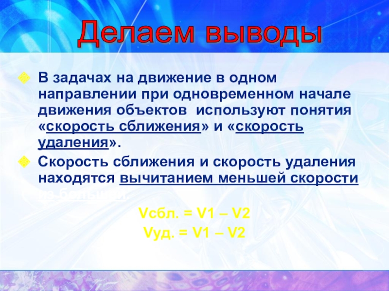Сравни эти два способа решения задачи. Какое новое понятие вводится во втором способе решения? Что такое скорость удаления?
