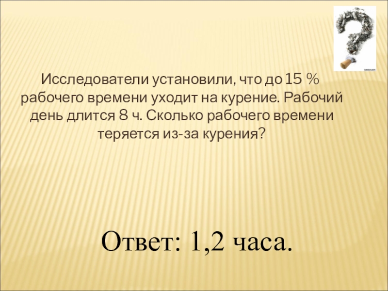 уходит на курение. Рабочий день длится 8 ч. Сколько рабочего времени теряется из-за курения?