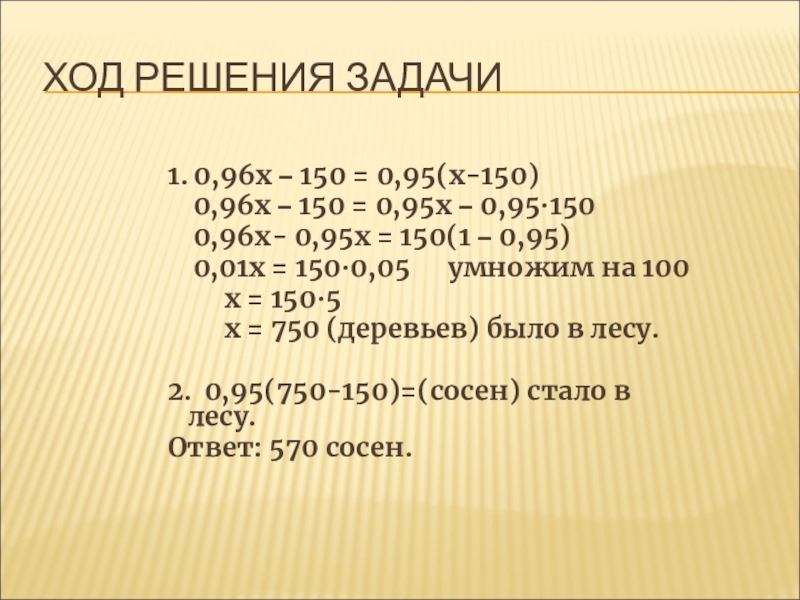 2. 0,95(750-150)=(сосен) стало в лесу.