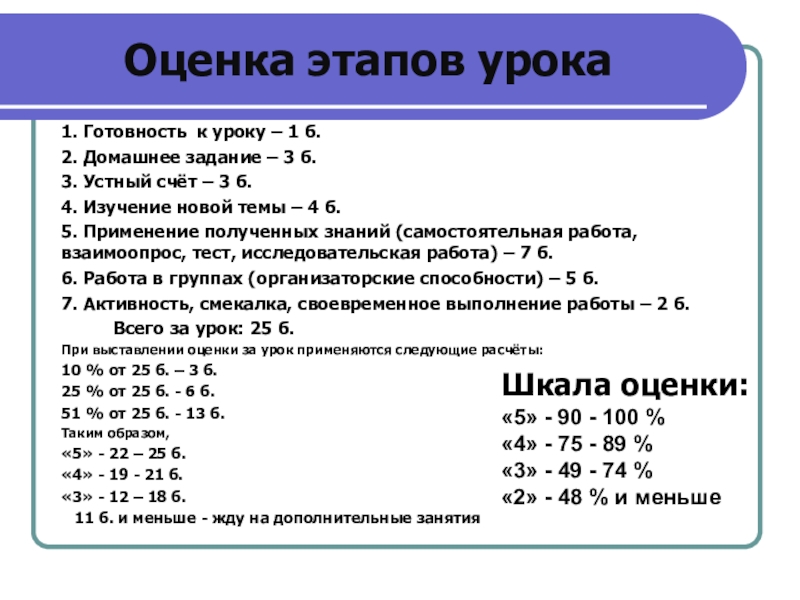 Применение рейтинговой системы оценки качества знаний и умений учащихся на уроках математики