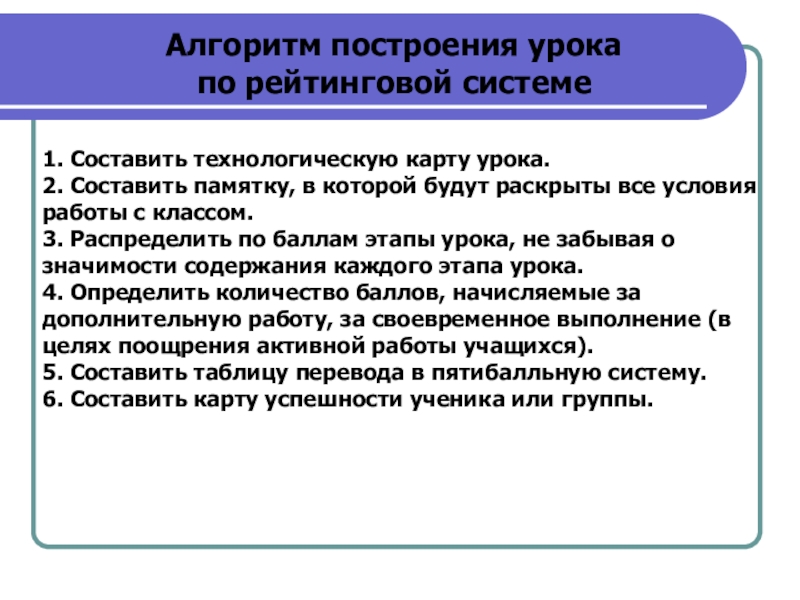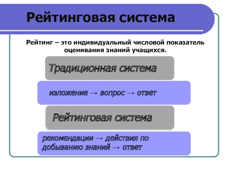 Рейтинг – это индивидуальный числовой показатель оценивания знаний учащихся.