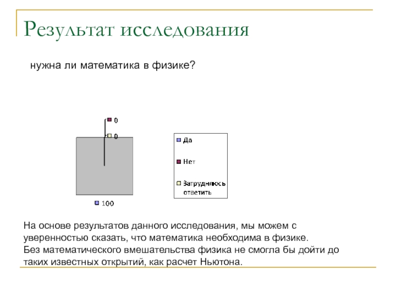 в физике. Как можно было заметить, на эту тему не существует единой точки зрения. И чтобы хоть немного разобраться в этом вопросе «какую же роль играет математика в физике?» , мы решили провести научное исследование на эту тему.