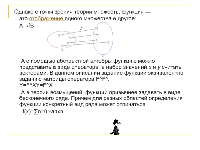Слайд 6 Однако с точки зрения теории множеств, функция — это отображение одного множества в