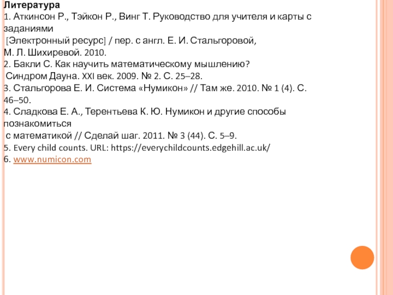 1. Аткинсон Р., Тэйкон Р., Винг Т. Руководство для учителя и