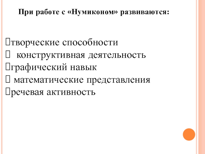Слайд 4При работе с «Нумиконом» развиваются: