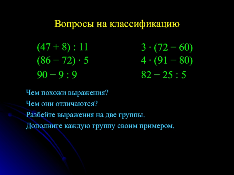 б) Сравнения выражений (что в них общего и чем отличаются).