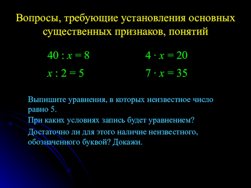 Достаточно ли для этого наличие неизвестного, обозначенного буквой? Докажи.