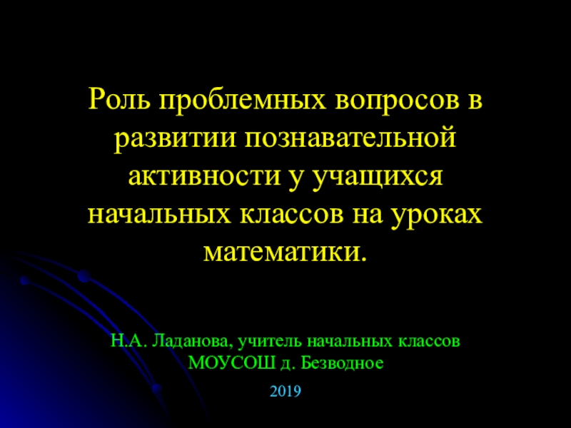 Н.А. Ладанова, учитель начальных классов МОУСОШ д. Безводное
