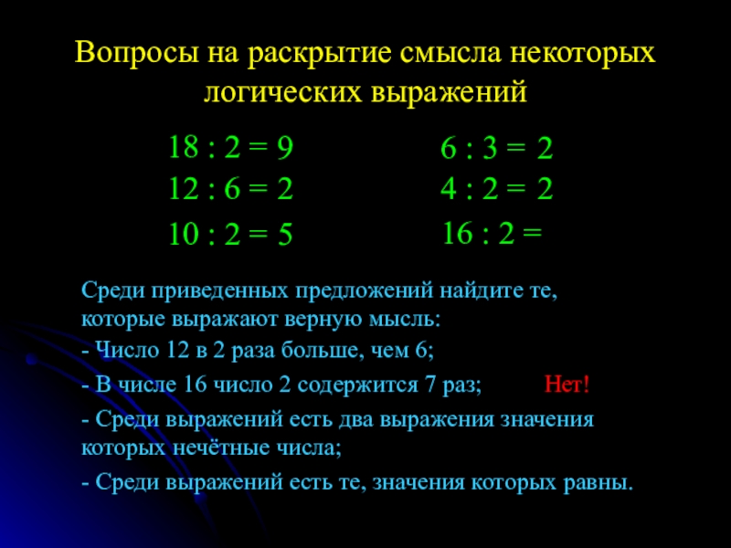 - Среди выражений есть два выражения значения которых нечётные числа;