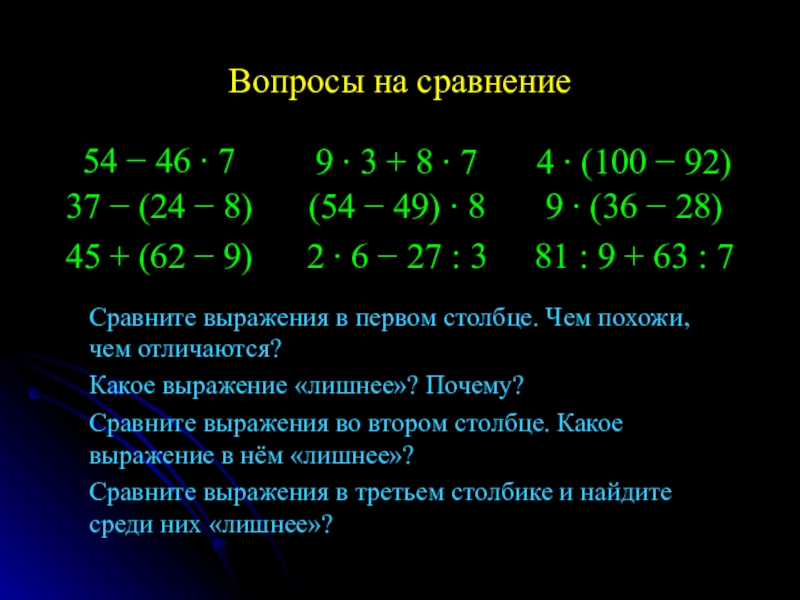 Сравните выражения во втором столбце. Какое выражение в нём «лишнее»?