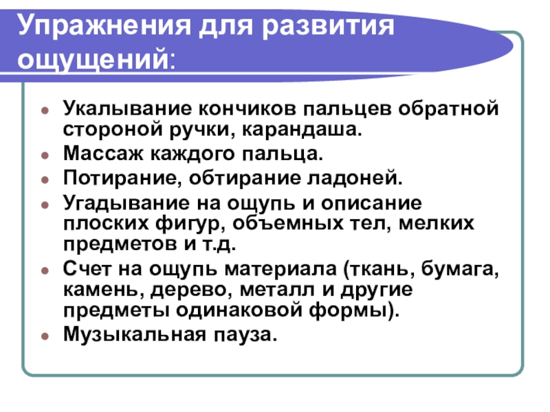 Укалывание кончиков пальцев обратной стороной ручки, карандаша.