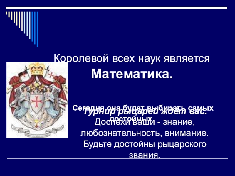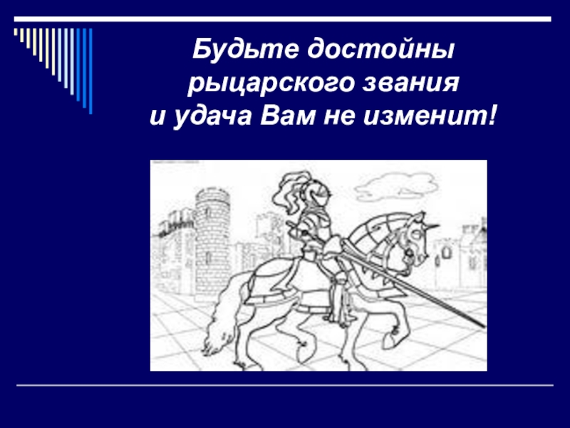 Доспехи ваши - знание, любознательность, внимание. Будьте достойны рыцарского звания.