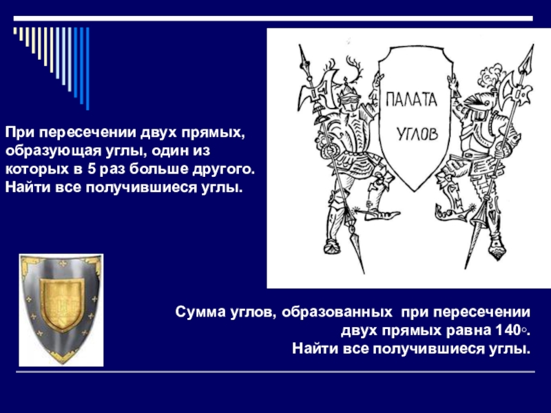 При пересечении двух прямых, образующая углы, один из которых в 5 раз больше другого.