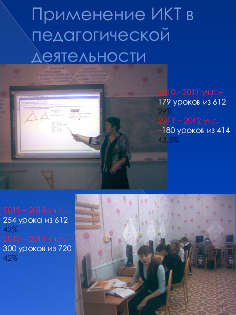 2010 - 2011 уч.г. – 179 уроков из 612 29%