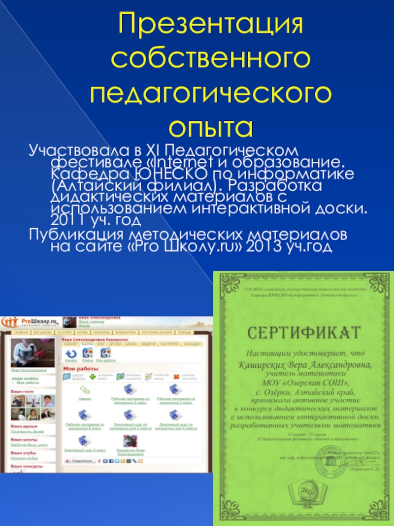 Участвовала в XI Педагогическом фестивале «Internet и образование.