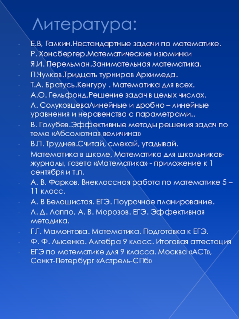 А. В. Фарков. Внеклассная работа по математике 5 – 11 класс.