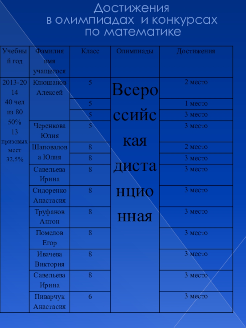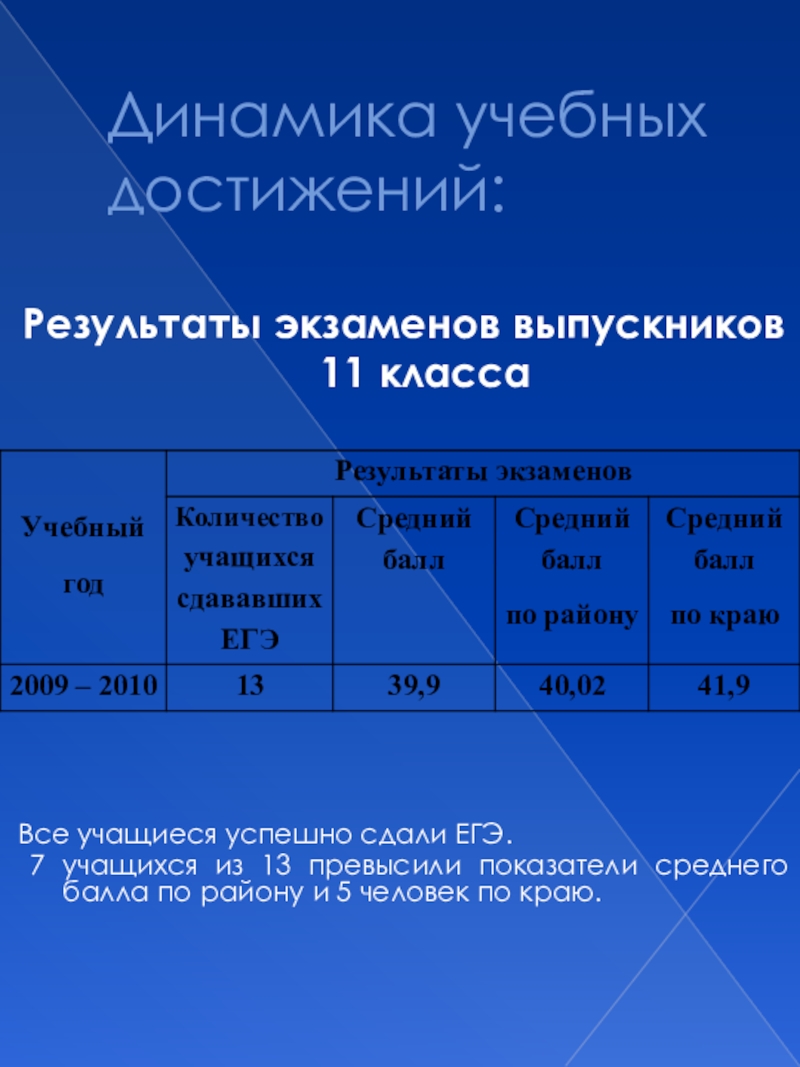 7 учащихся из 13 превысили показатели среднего балла по району и 5 человек по краю.