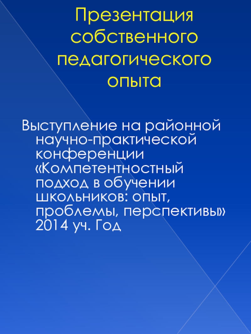Выступление на районной научно-практической конференции «Компетентностный подход в
