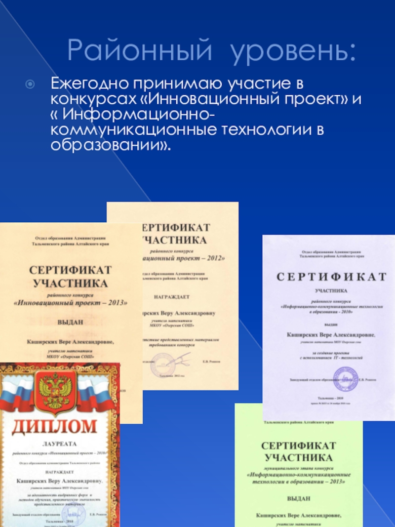 Ежегодно принимаю участие в конкурсах «Инновационный проект» и « Информационно-коммуникационные