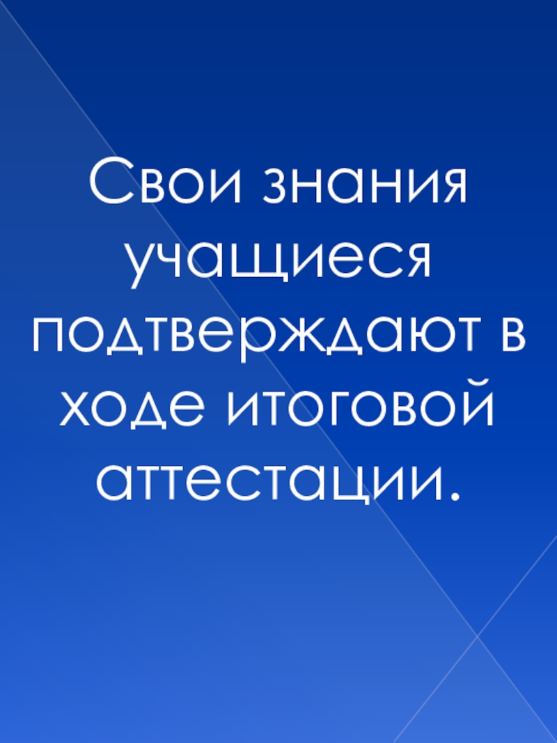 Слайд 5Свои знания учащиеся подтверждают в ходе итоговой аттестации.