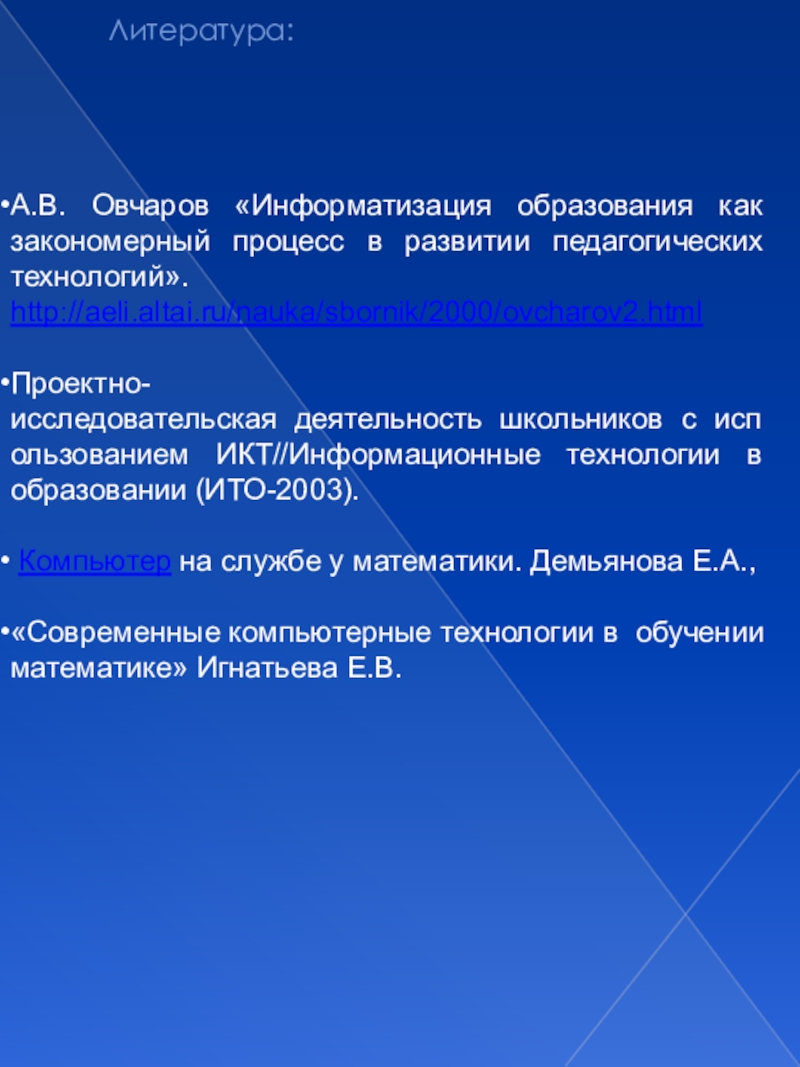 А.В. Овчаров «Информатизация образования как закономерный процесс в развитии педагогических технологий».