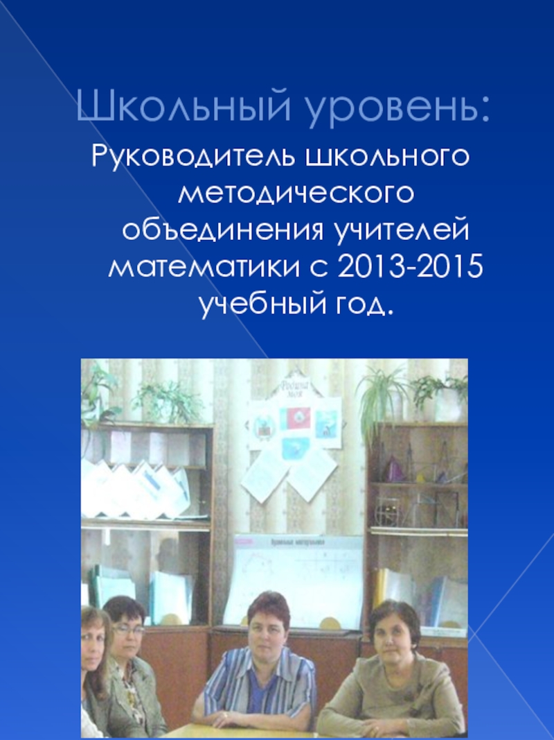 Руководитель школьного методического объединения учителей математики с 2013-2015 учебный год.
