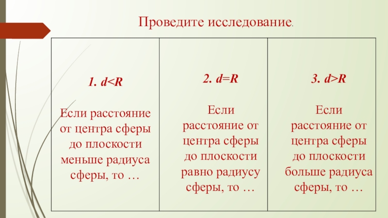 Изобразим сферу с центром в т.С, лежащей на положительной полуоси Oz и имеющей координаты (0;0;d), где d - расстояние (перпендикуляр) от центра сферы до плоскости α .