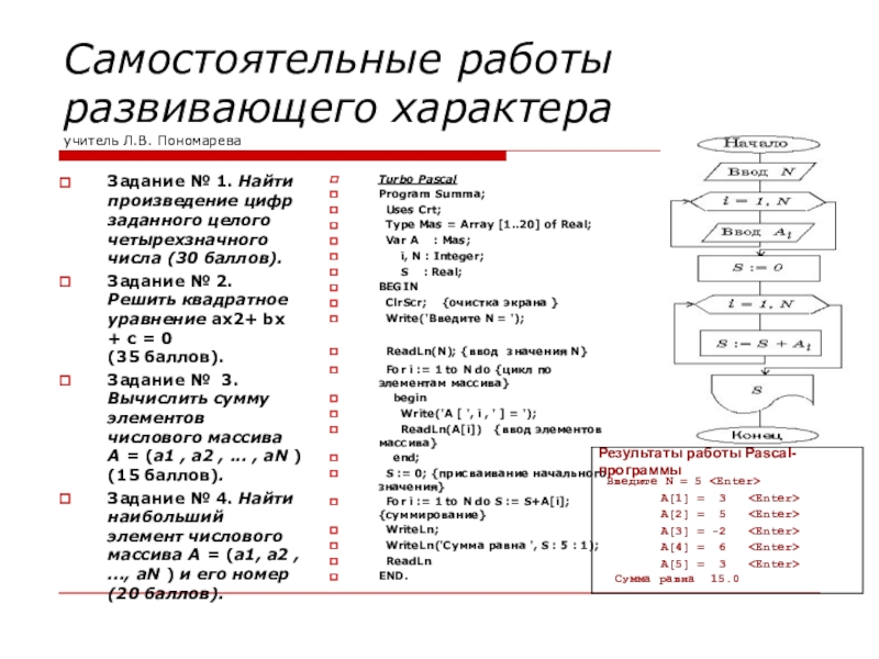 For i := 1 to N do S := S+A[i]; {суммирование}