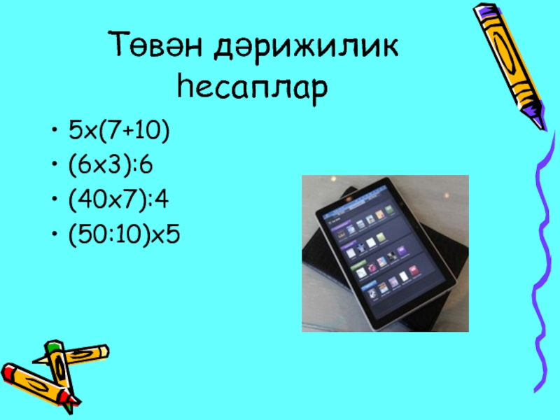 Төвән дәрижилик һесаплар5х(7+10)(6х3):6(40х7):4(50:10)х5