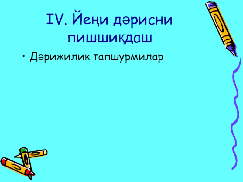 Слайд 16IV. Йеңи дәрисни пишшиқдаш