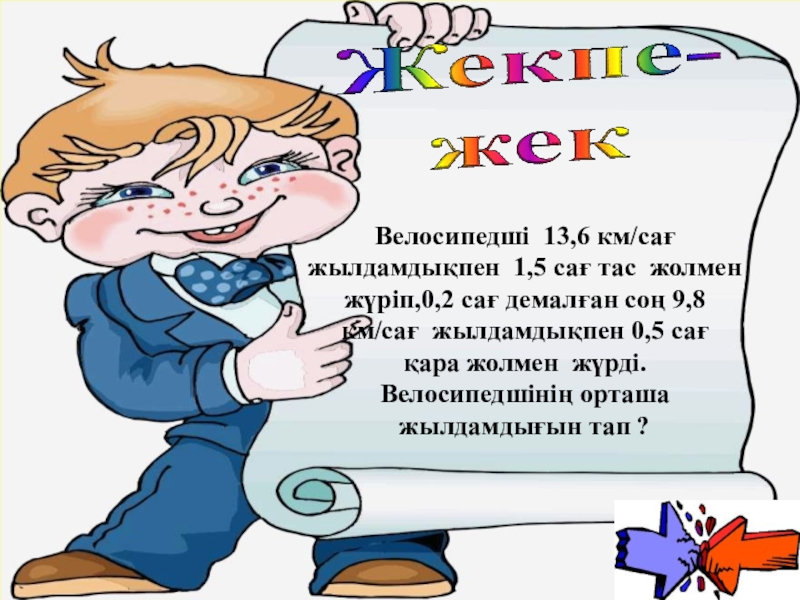 қара жолмен жүрді. Велосипедшінің орташа жылдамдығын тап ?