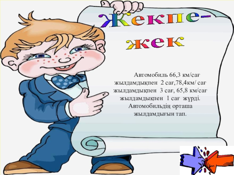 Слайд 11 Автомобиль 66,3 км/сағ жылдамдықпен 2 сағ,78,4км/ сағ