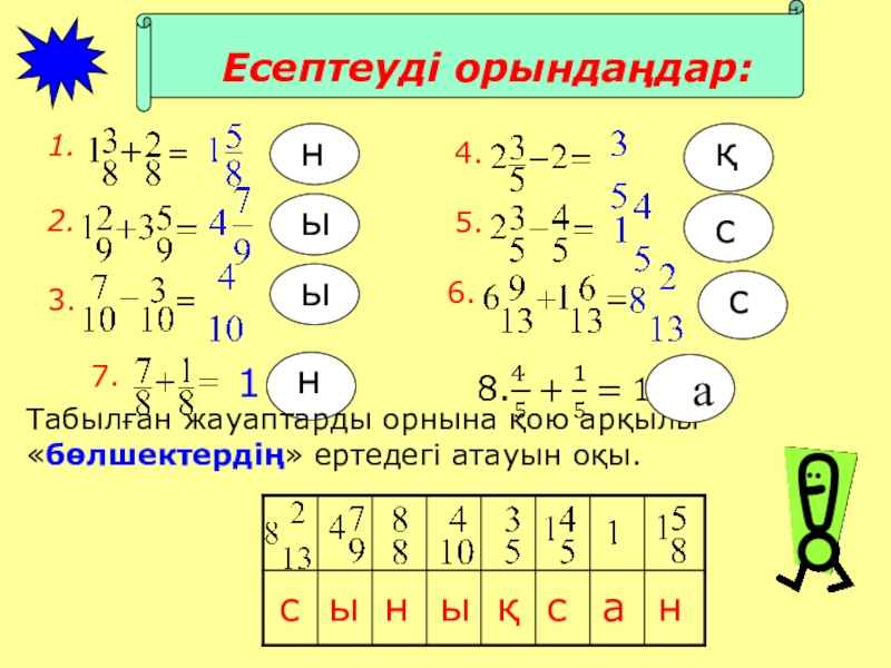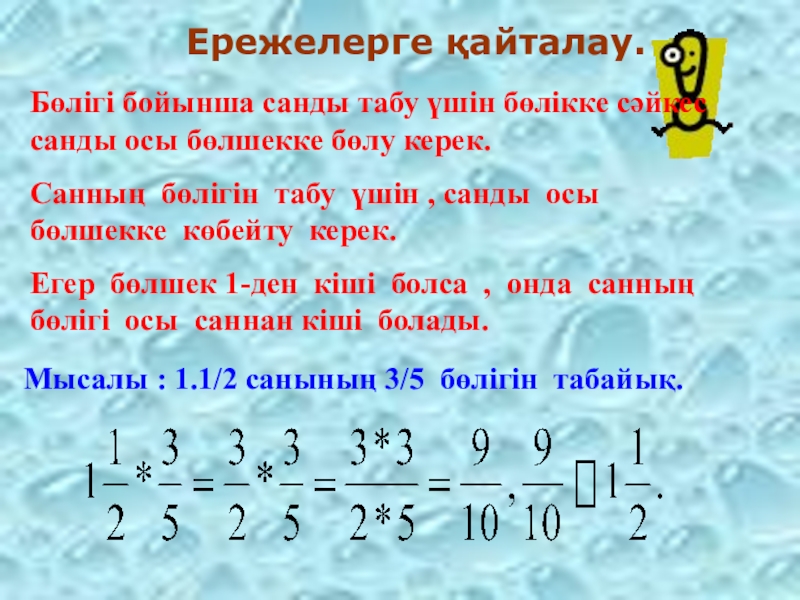 Мысалы : 1.1/2 санының 3/5 бөлігін табайық.