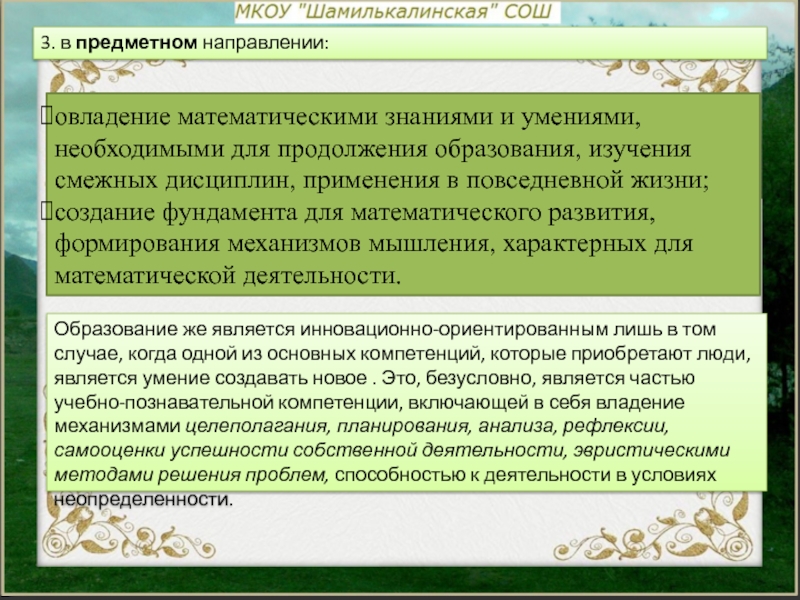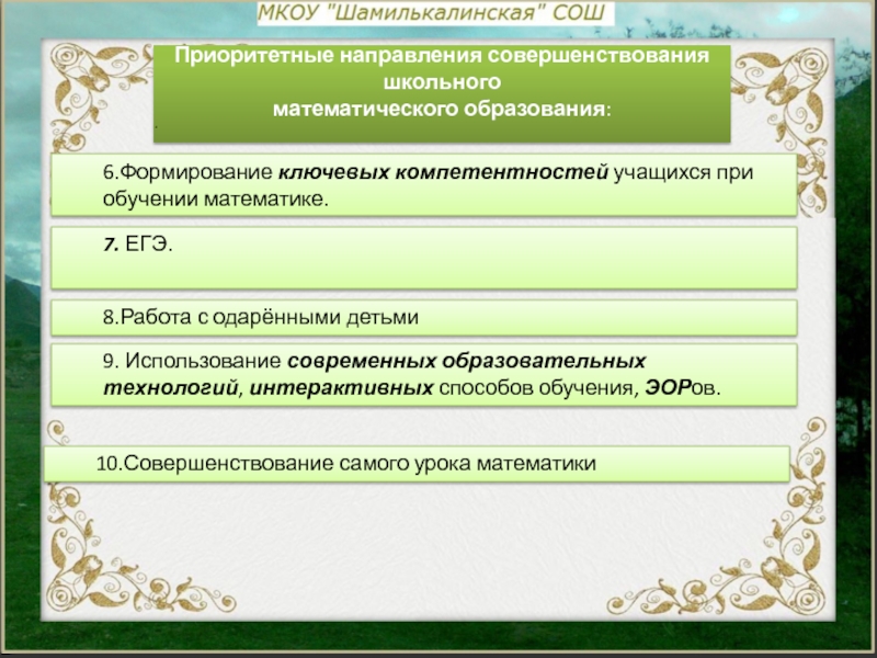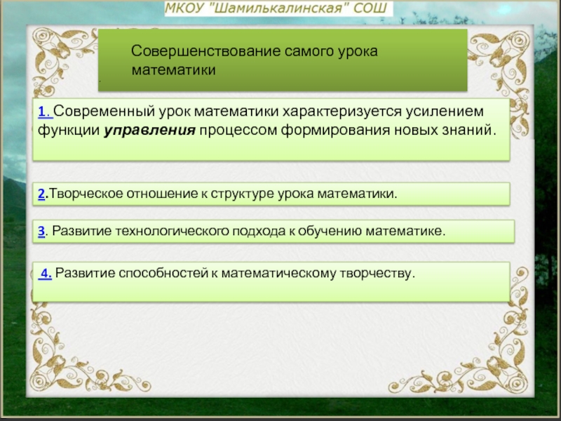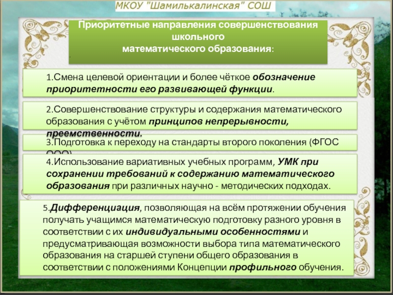 2.Совершенствование структуры и содержания математического образования с учётом принципов непрерывности, преемственности.