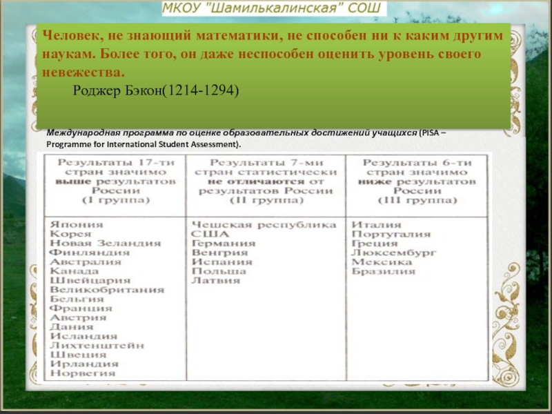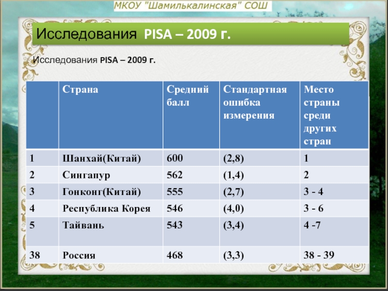 Международная программа по оценке образовательных достижений учащихся (PISA – Programme for International Student Assessment).