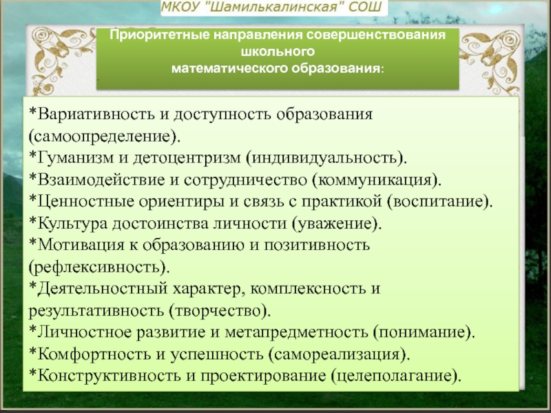 *Ценностные ориентиры и связь с практикой (воспитание).