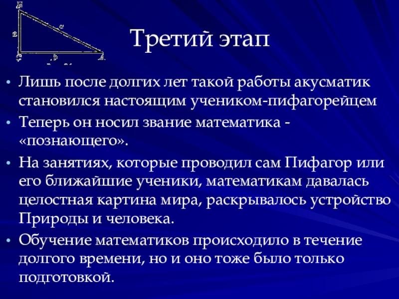 Лишь после долгих лет такой работы акусматик становился настоящим учеником-пифагорейцем