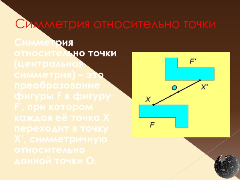 Симметрия относительно точки (центральная симметрия) – это преобразование фигуры