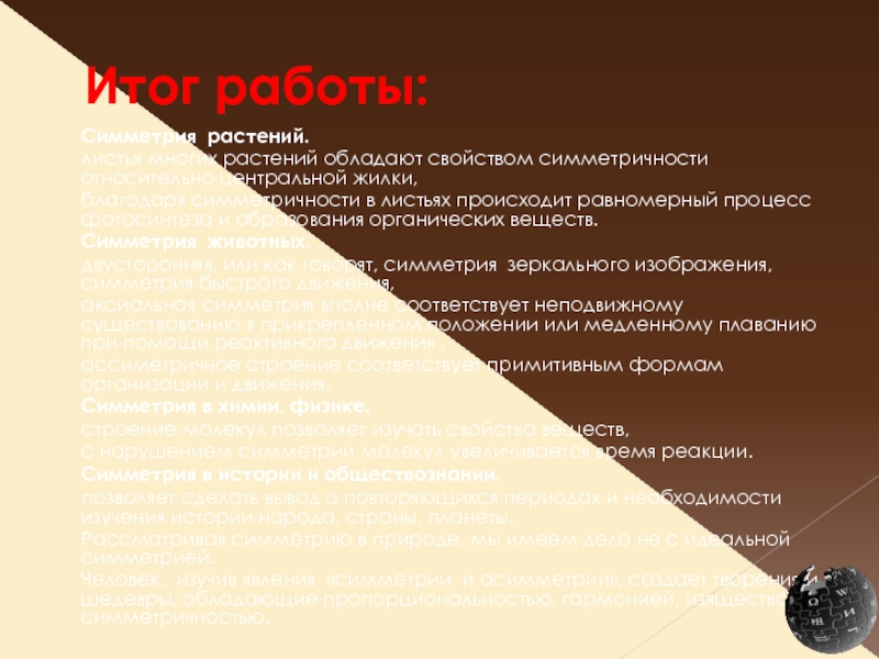 Человек, изучив явления «симметрии и асимметрии», создает творения и шедевры, обладающие пропорциональностью, гармонией, изяществом, симметричностью.