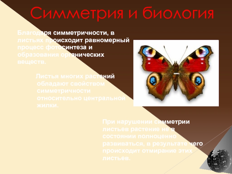 симметричности в листьях происходит равномерный процесс фотосинтеза и образования органических веществ.