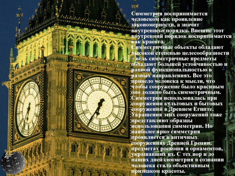 Слайд 35 Симметрия воспринимается человеком как проявление закономерности, а значит внутреннего порядка. Внешне